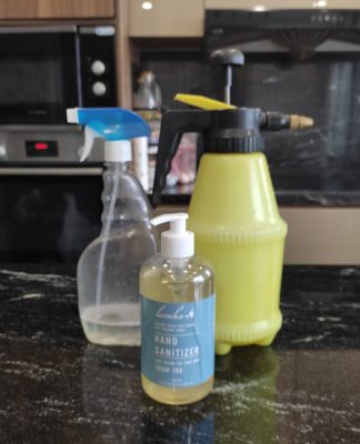 - Cách pha chế nước rửa tay khô tràm trà thành chai nước xịt khuẩn không gian, đồ vật